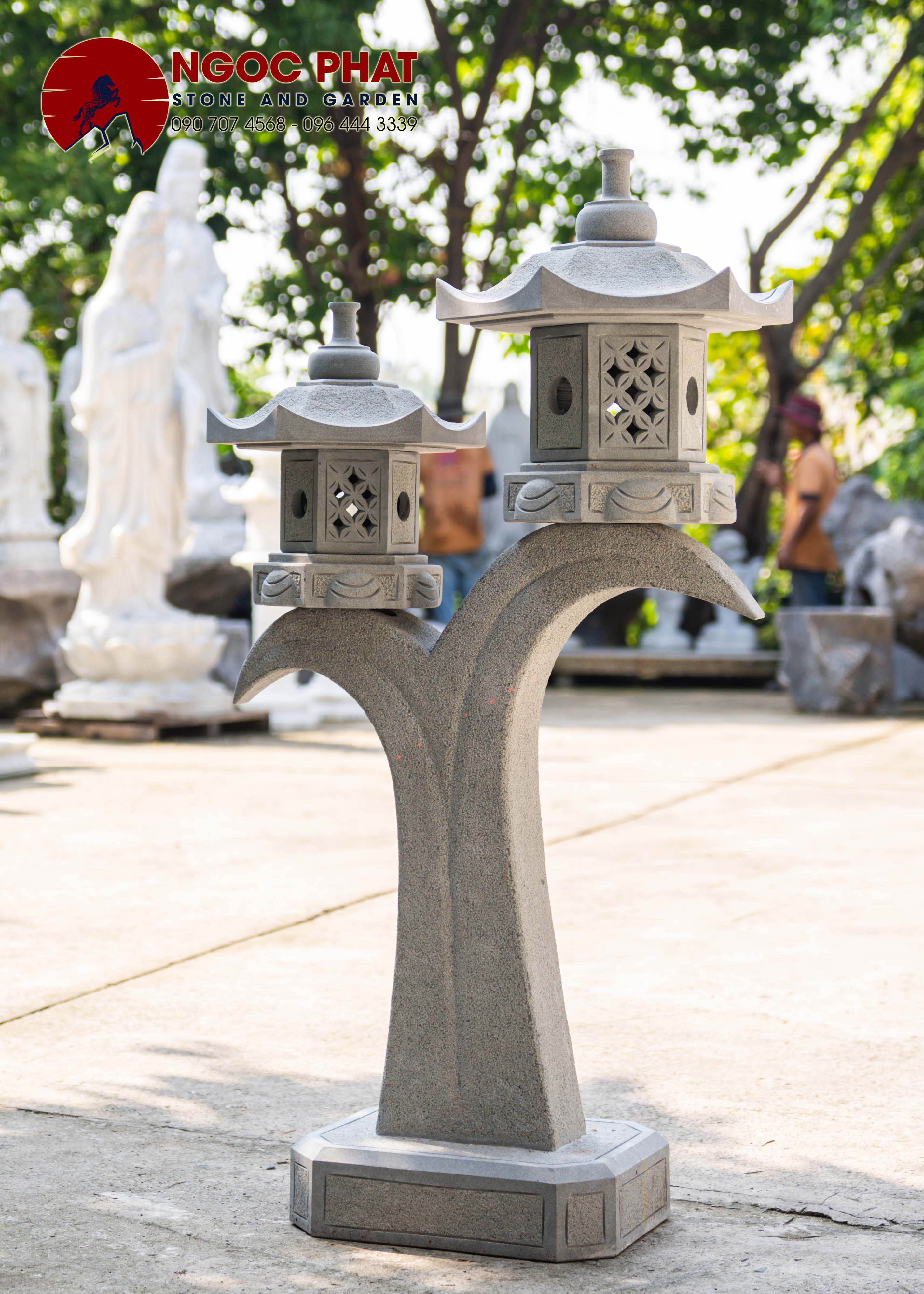 Đèn đá sân vườn tại Ngọc Phát được chế tác theo phong cách chuẩn Nhật, với các họa tiết mang nét truyền thống Nhật Bản. Sự có mặt của đèn Nhật được xem là cả tâm huyết với kỳ vòng của các nghệ nhân, những con người dành cả thời gian và cống sức cho việc chế tác,…